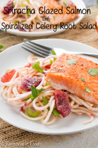 Sriracha Honey Salmon with Spiralized Celery Root Salad Pin February 18, 2016 by Keri Leave a Comment