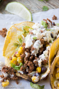 Chorizo Taco with Black Bean Corn Salsa and Cilantro Lime Crema April 25, 2016 by Keri Leave a Comment