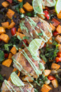 Sheet Pan Southwest Chicken Thighs and Vegetables with Avocado Aioli January 8, 2017 by Keri Leave a Comment