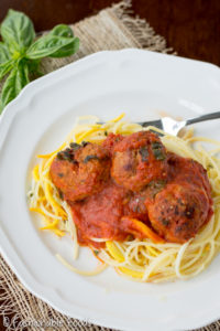 • Kale Noodle Soup with Sausage Meatballs